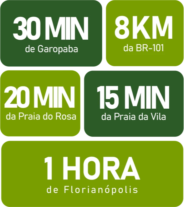 Rodeada por áreas de preservação permanente, cachoeiras, trilhas e lagos naturais, a fazenda está estrategicamente localizada em Imaruí, a poucos minutos das praias mais desejadas de Santa Catarina.